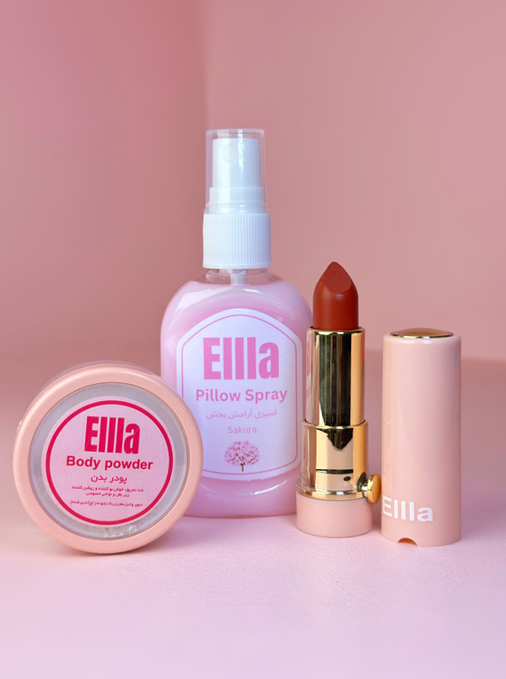 کش ساتن. رژ ارگانیک. اسپری بالشت ساکورا. مام پودری